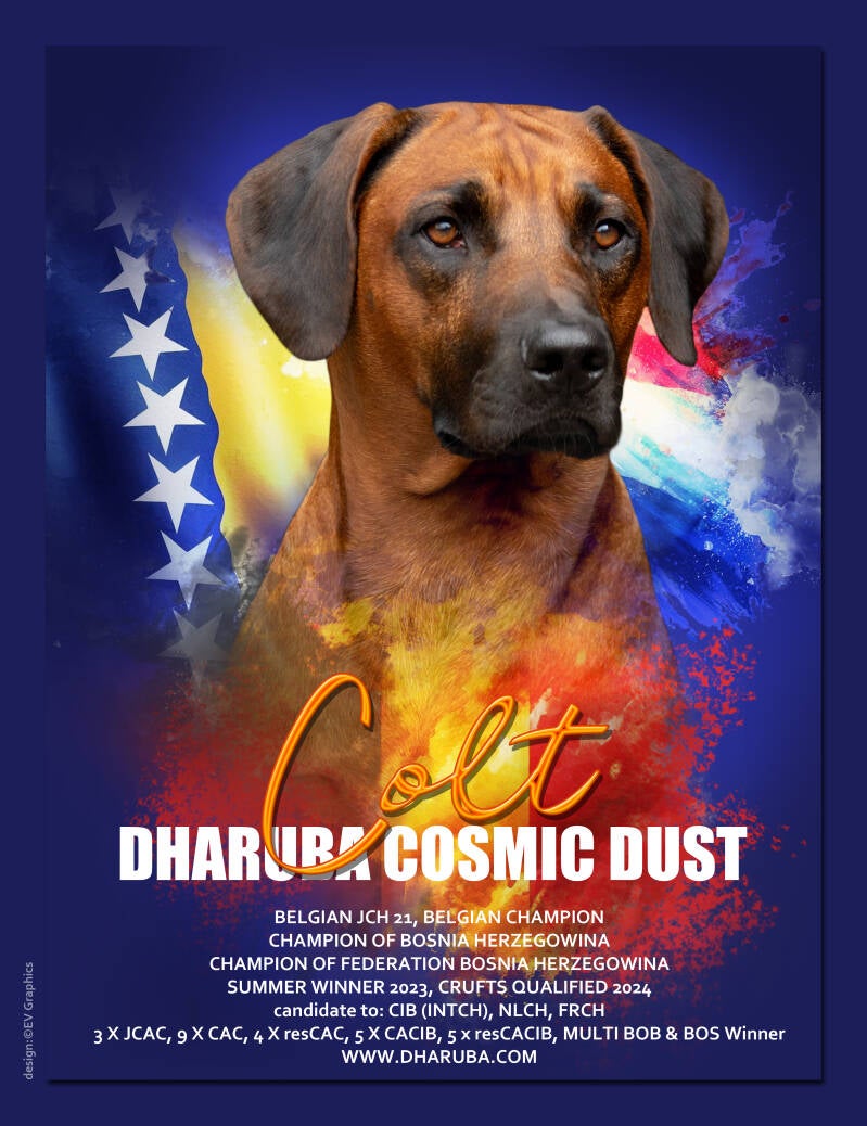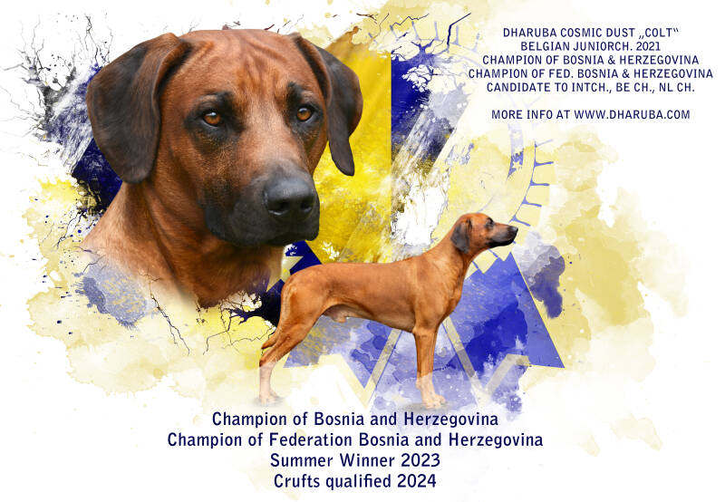 Ik ben toch zó trots en blij jullie te kunnen meedelen dat onze knappe Dharuba Cosmic Dust aka Colt, onder concurrentie van nog 2 open klas reuen, 1 tussenklas reu en 2 kampioens reuen, het klaargespeeld heeft om 1 res. CAC, 3 CAC’s, 2 CACIB’s én de Crufts Qualification, 2 x beste reu en Best Opposite Sex (BOS) en 1 x beste reu en Best of Breed (BOB), binnen te slepen.